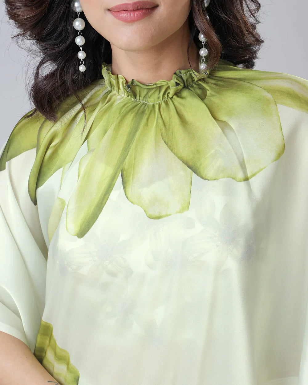 • Design: Hand-drawn style oversized green floral motifs