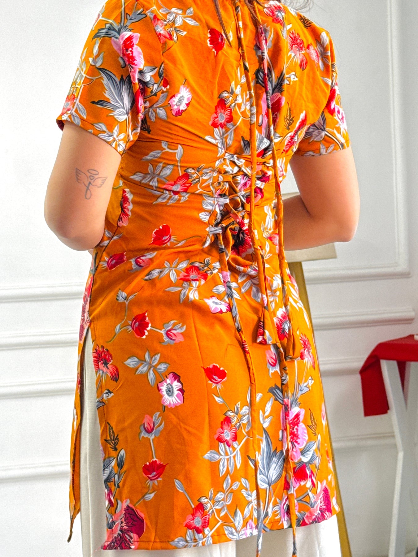 Marigold Floral Print Kurti with Adjustable Corset Back