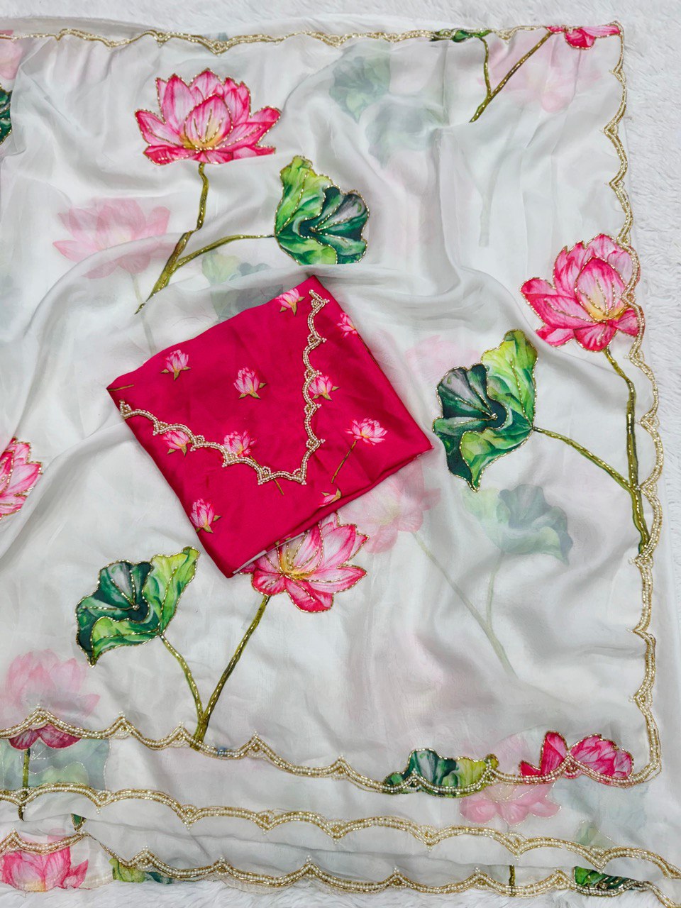 - Care Instructions: Dry clean only to maintain the intricate detailing and luxurious fabric of the saree.