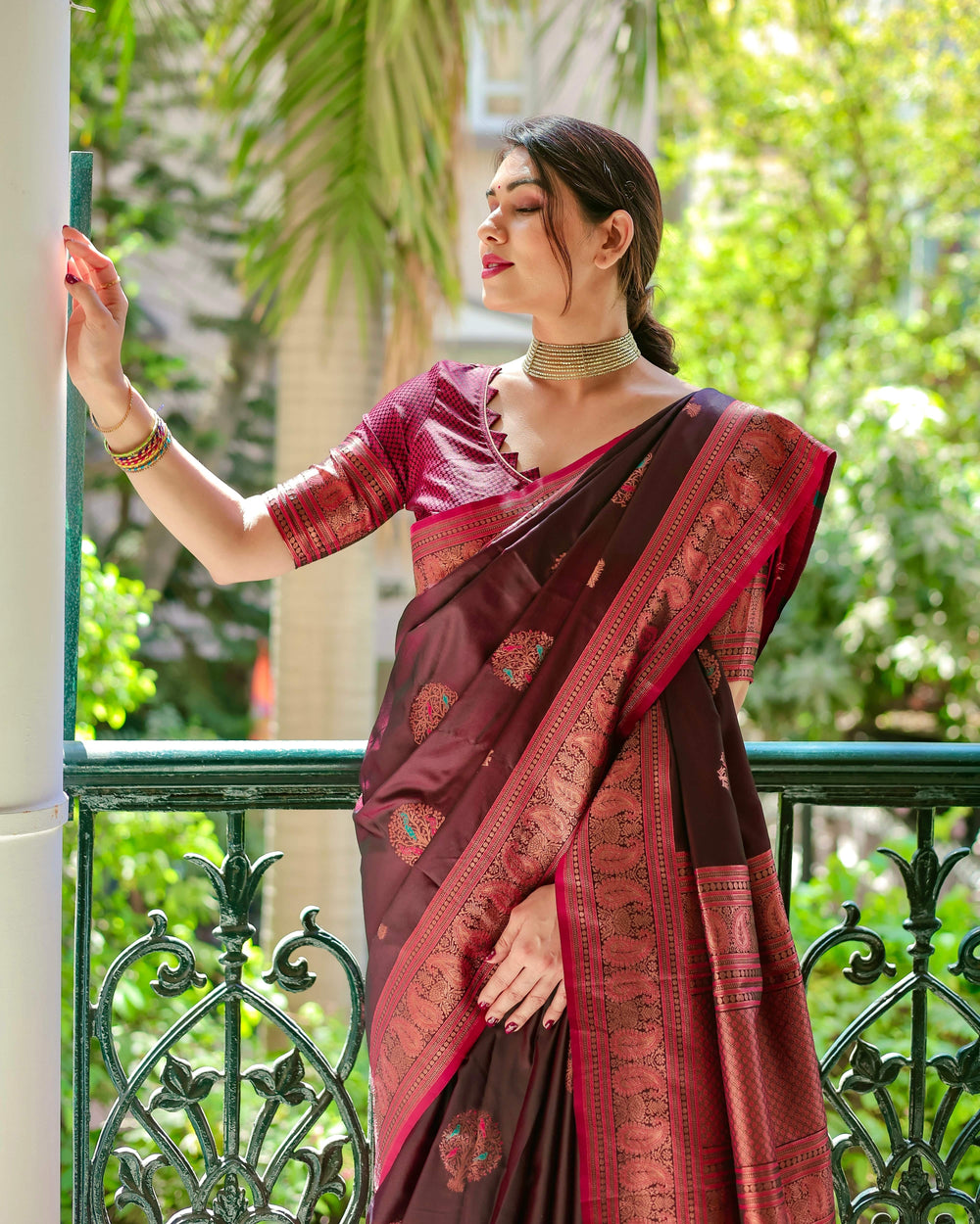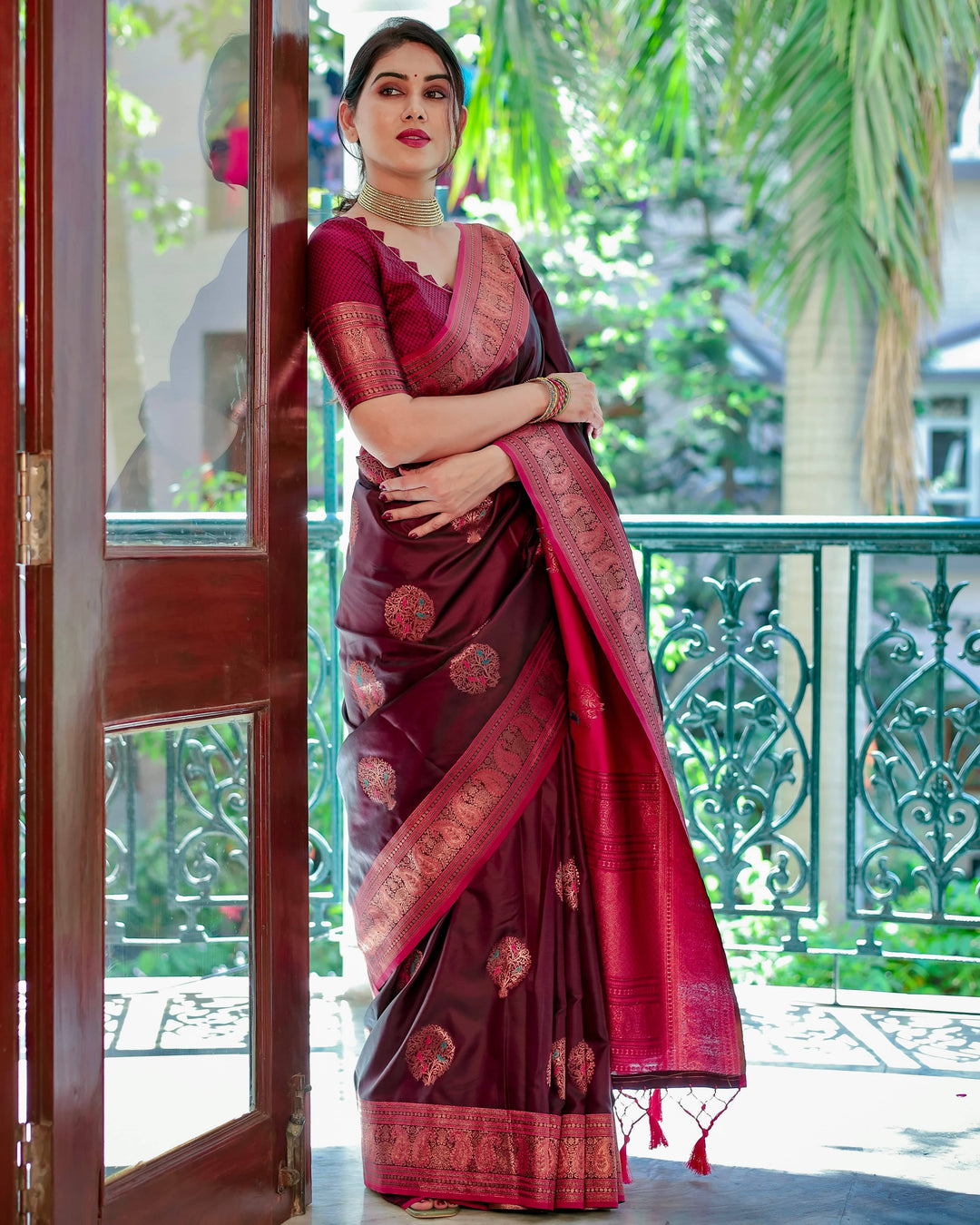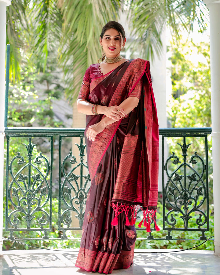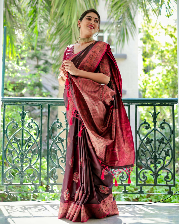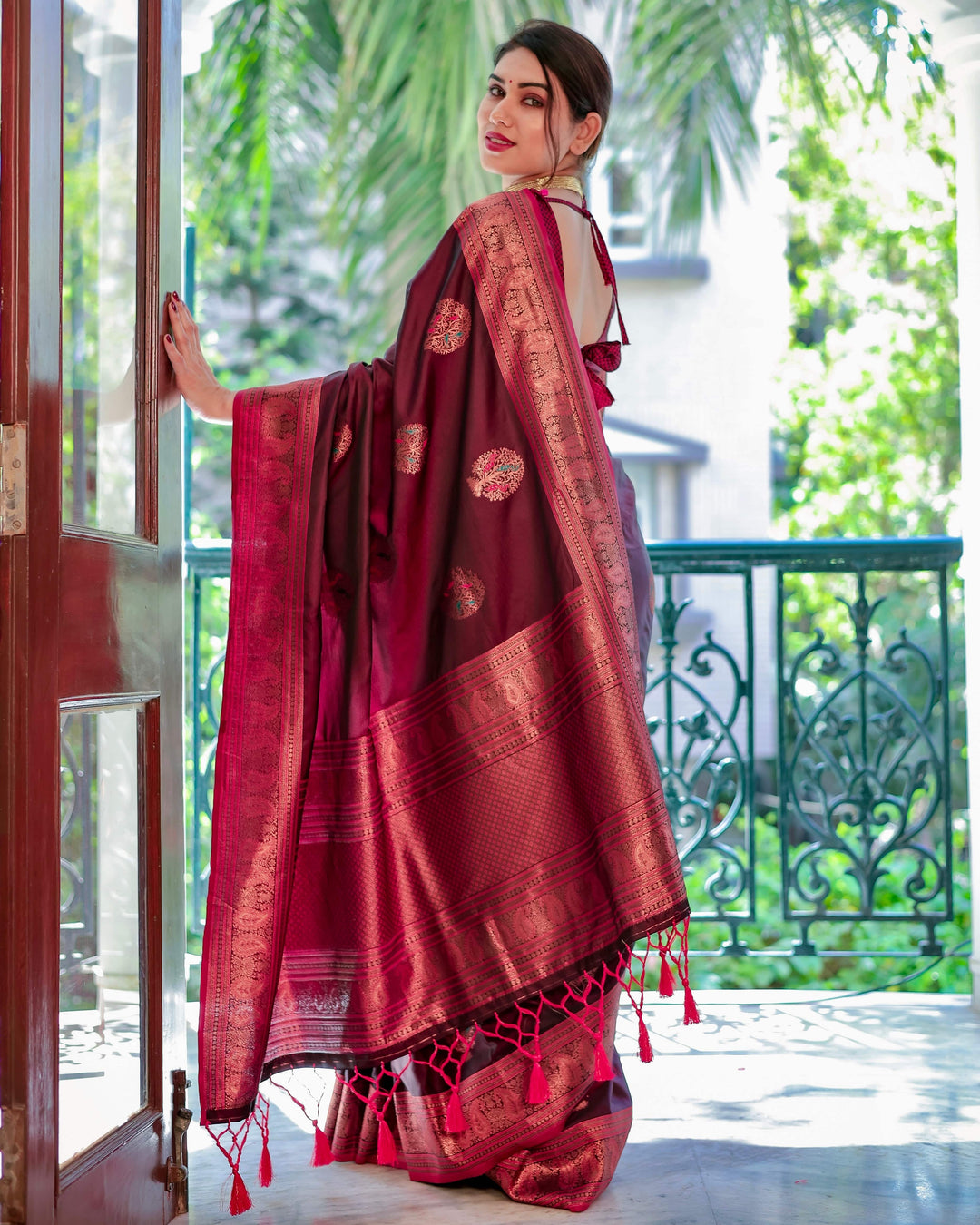 Pure Gaji Silk Saree Weaved With Zari Comes With Tassels