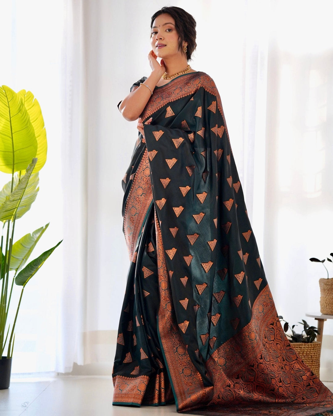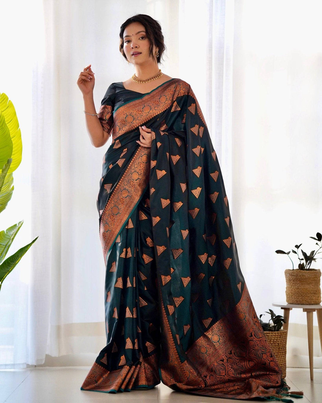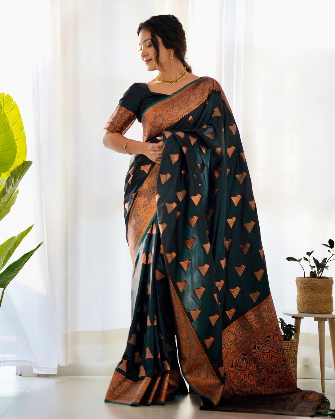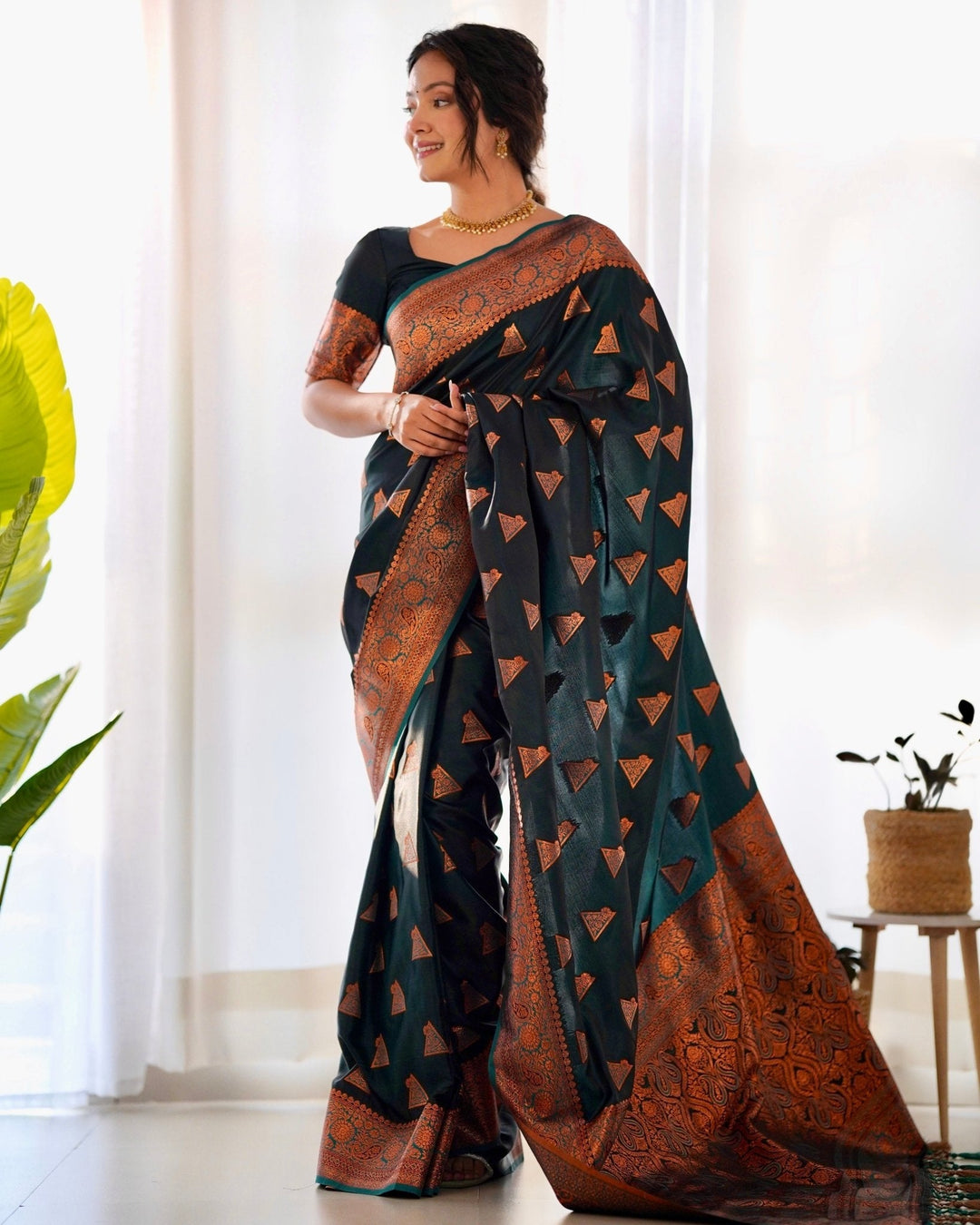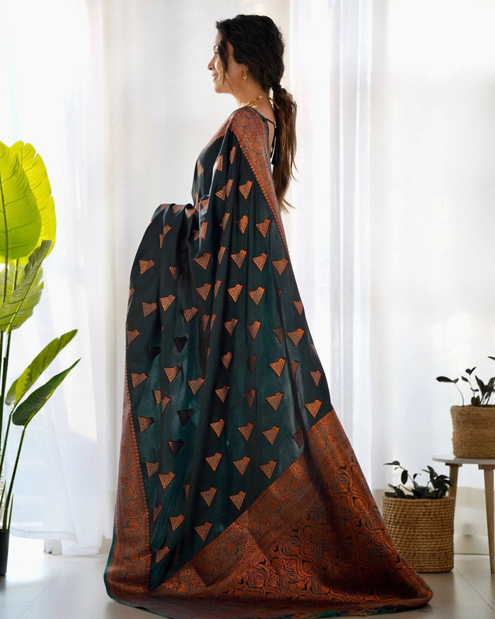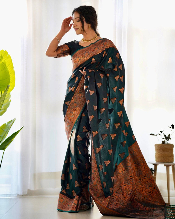 - Design: The saree features a sophisticated zari weave that adds a subtle shimmer and elevates its overall look.