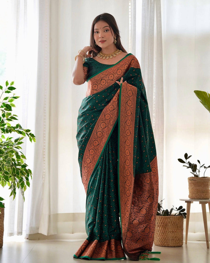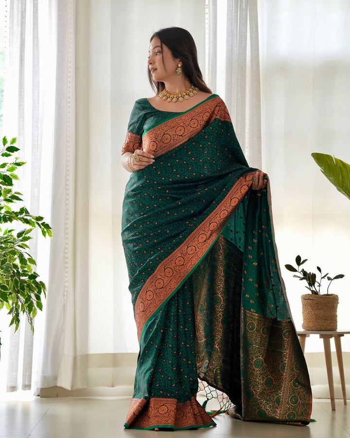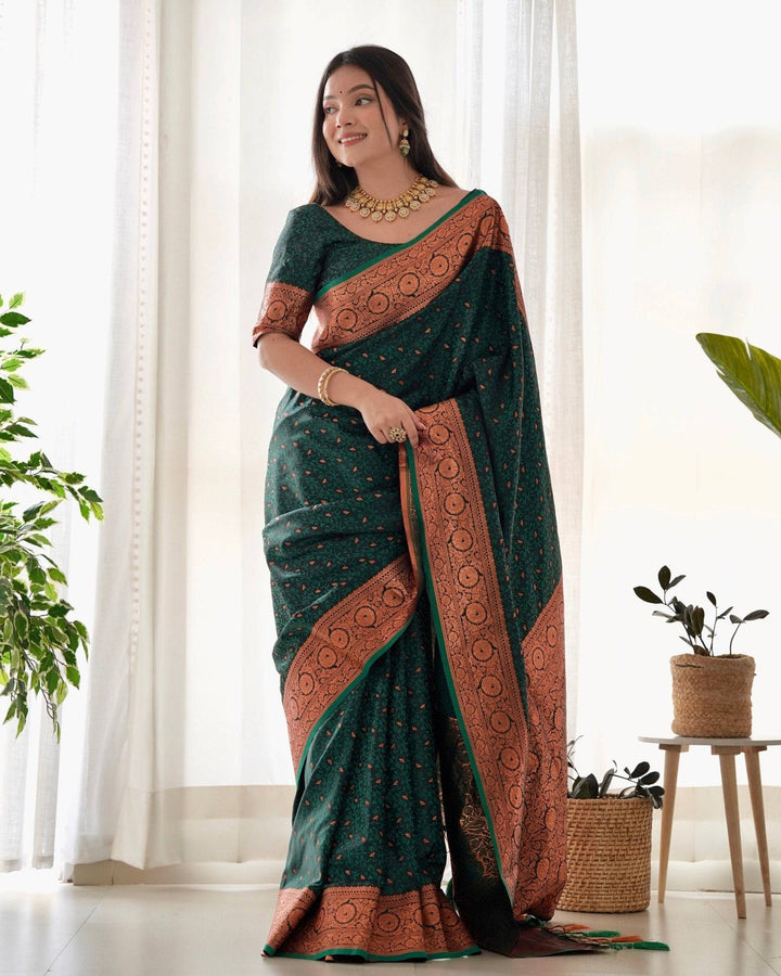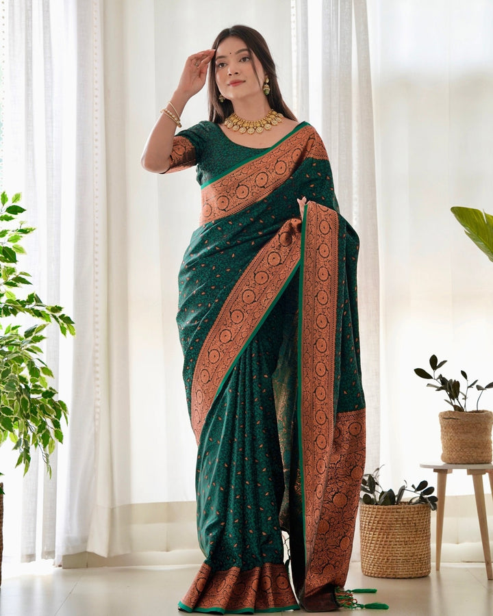 Pure Gaji Silk Saree Weaved With Copper Zari - Almaari Fashion