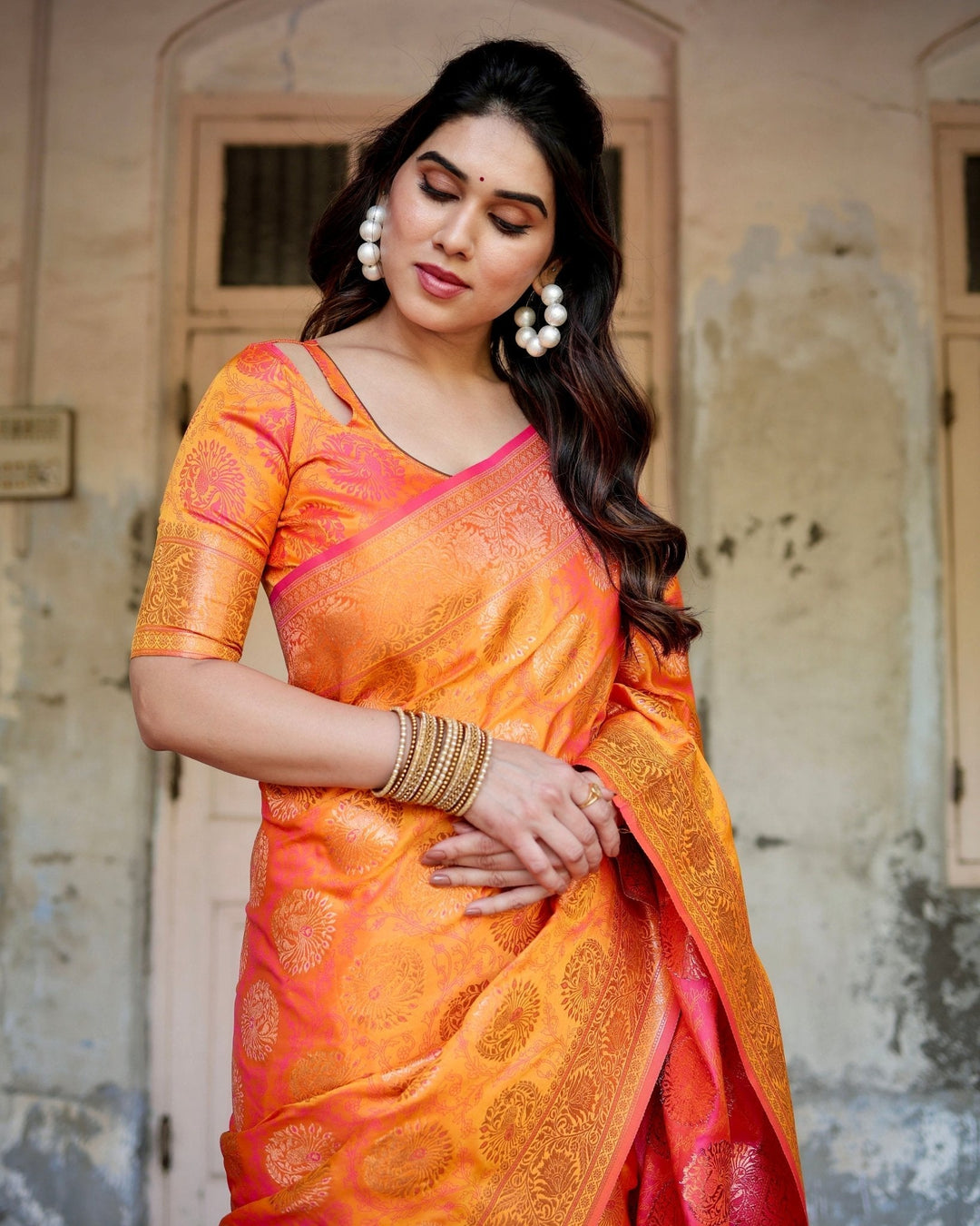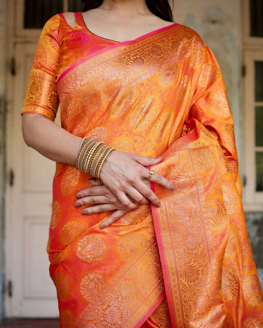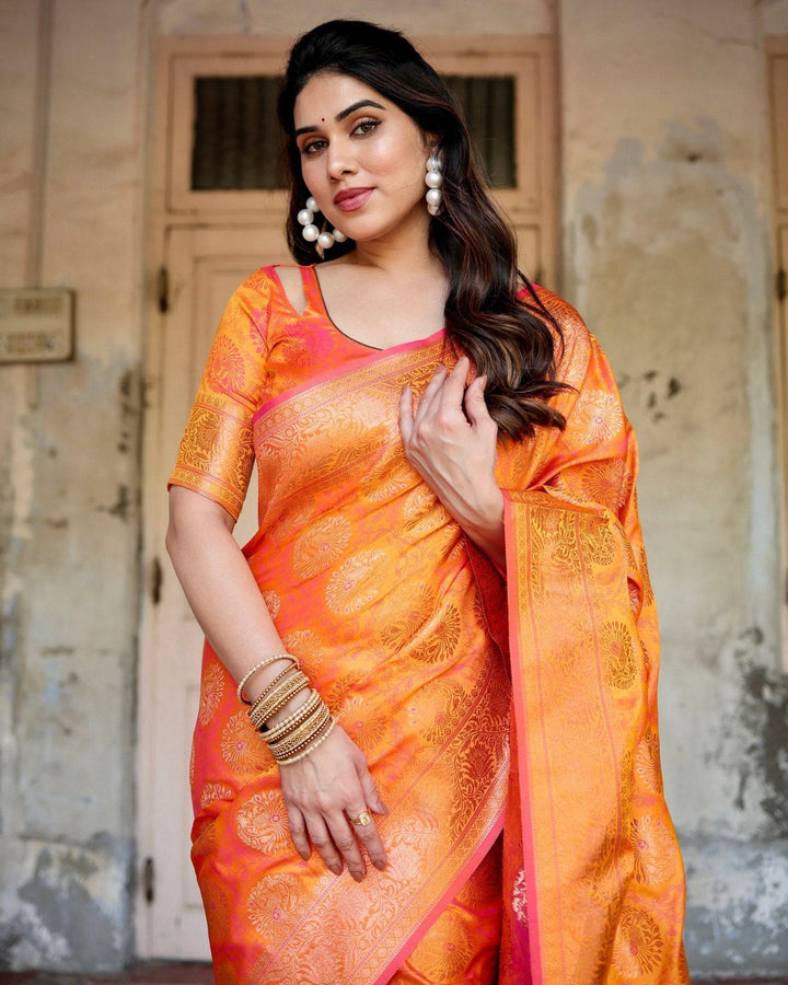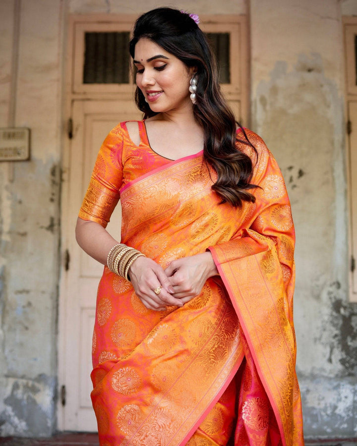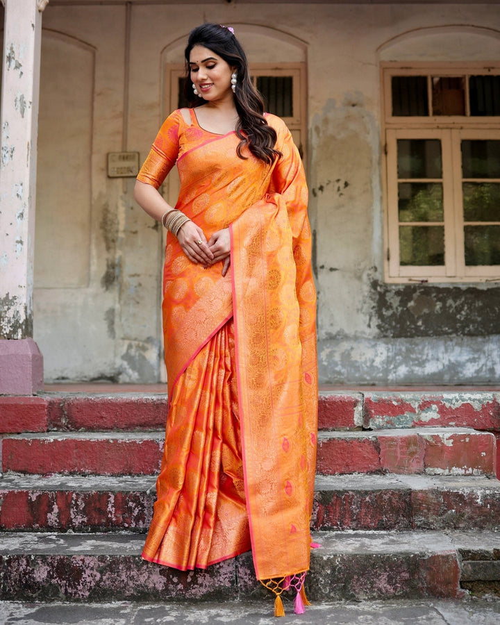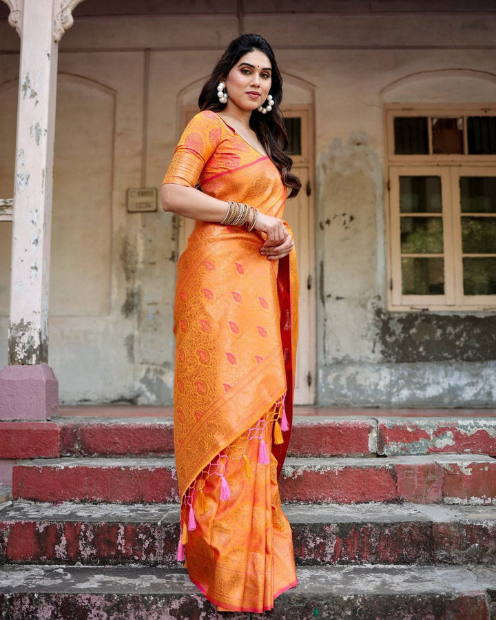 Pure Gaji Silk Saree Weaved With Zari Comes With Tassels - Almaari Fashion